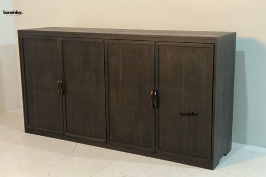 Hand Carved Four Door Rustic Wooden Traditional Sideboard Cabinet