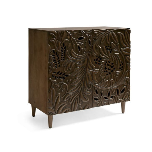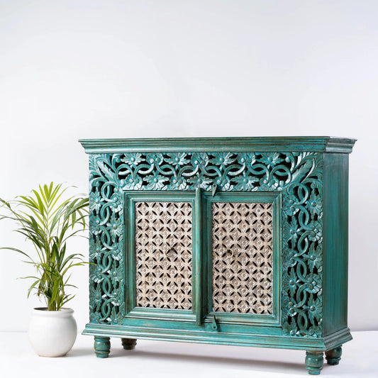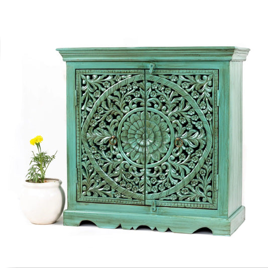 Hand Carved Floral Design Small Sideboard Cabinet with Two Door