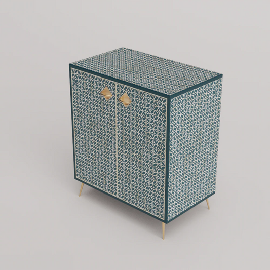 Handmade Bone Inlay Entryway Cabinet in Blue Color | Ikat Bone inlay Cabinet