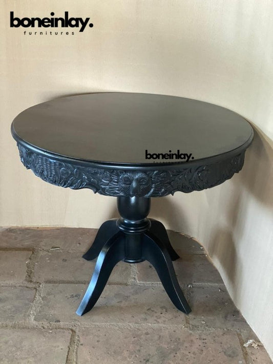 Hand Carved Wooden Round Menagerie Dining Table Set in Black Color