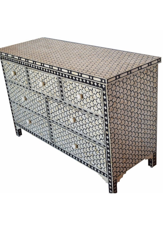 Handmade Bone Inlay Chest of Seven Drawers Dresser Zig-Zag Design