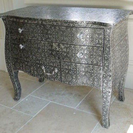 Hand Embossed Blackened Silver Embossed Metal Chest of Three Drawers Dresser