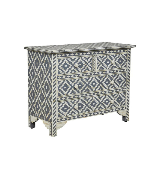 Handmade Bone Inlay Geometric Diamond Grey Color Chest of Four Drawer Dresser