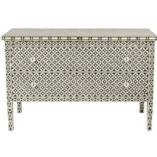 Handmade Bone inlay Geometric Pattern Chest of Two Drawer Dresser Black & White Color