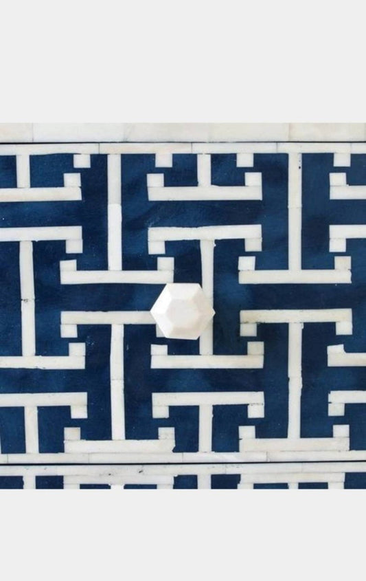 Handmade Bone Inlay Chest of Three Drawer Dresser Blue Color