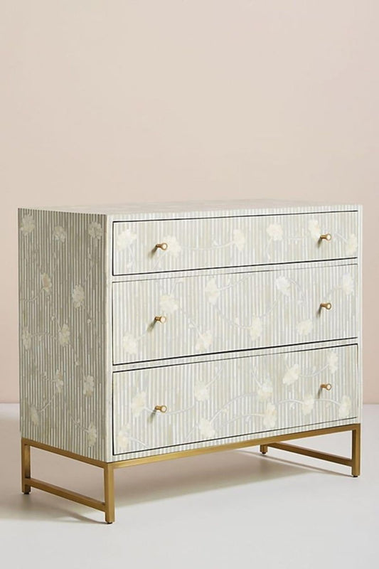 Handmade Bone Inlay Three drawers Dresser | Luxury Chest of Three Drawers