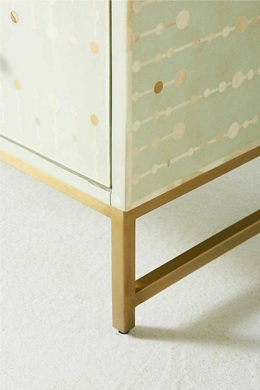 Handmade Bone Inlay Chest of Three Drawers Light Green Color Sprout Design | Custom Made Storage Unit