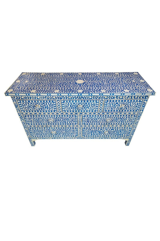 Handmade Bone Inlay Chest of Seven Drawers Blue Color