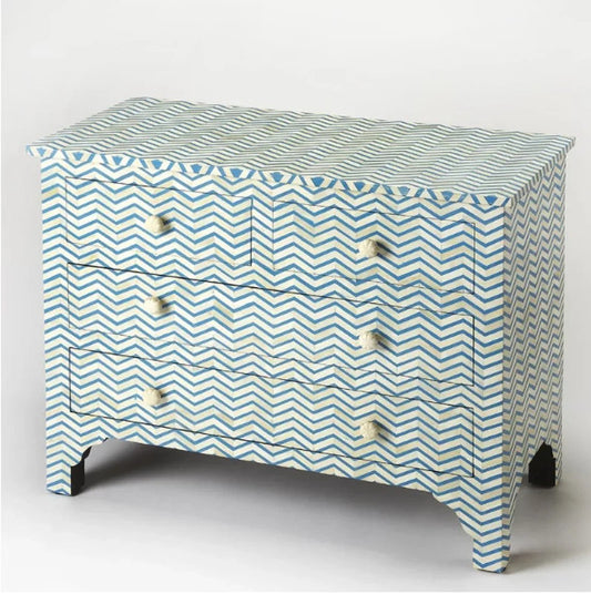 Handmade Bone inlay Grey Color Chevron Pattern Chest of Four Drawers