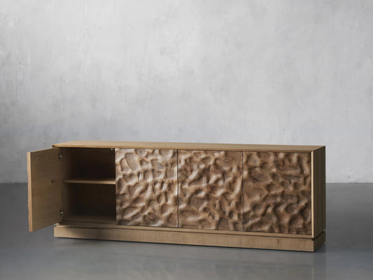 Handmade Design Solid Wood Natural Color Media Console with Four Doors