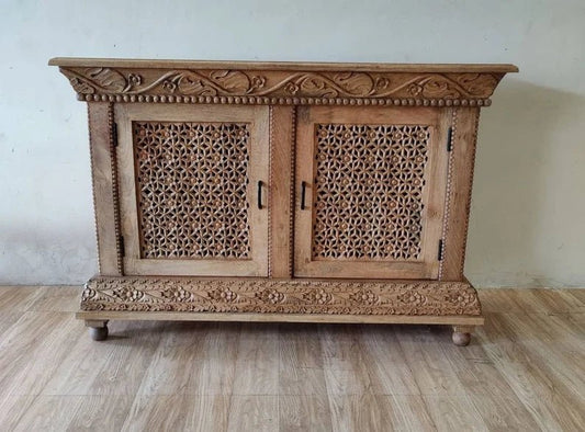 Hand Carved Two Door Small Sideboard | Solid Wooden Cabinet