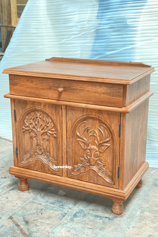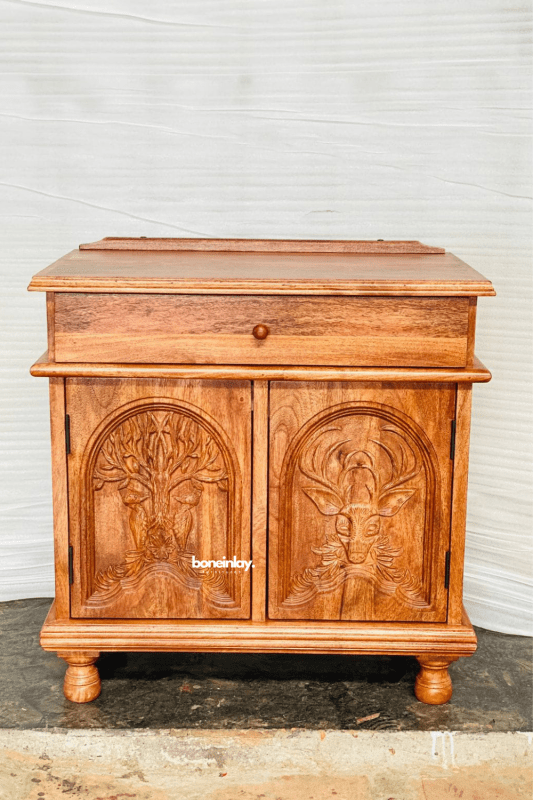 Hand Carved Wooden Samuel Cabinet | Custom Made Storage Unit