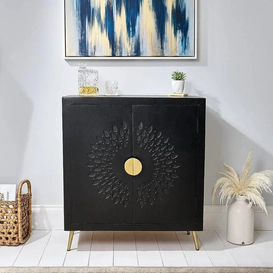 Wooden Hand Carved Mandala Large Cabinet with Black Finish