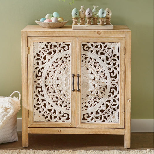 Hand Carved Floral Design Small Sideboard Cabinet with Two Door