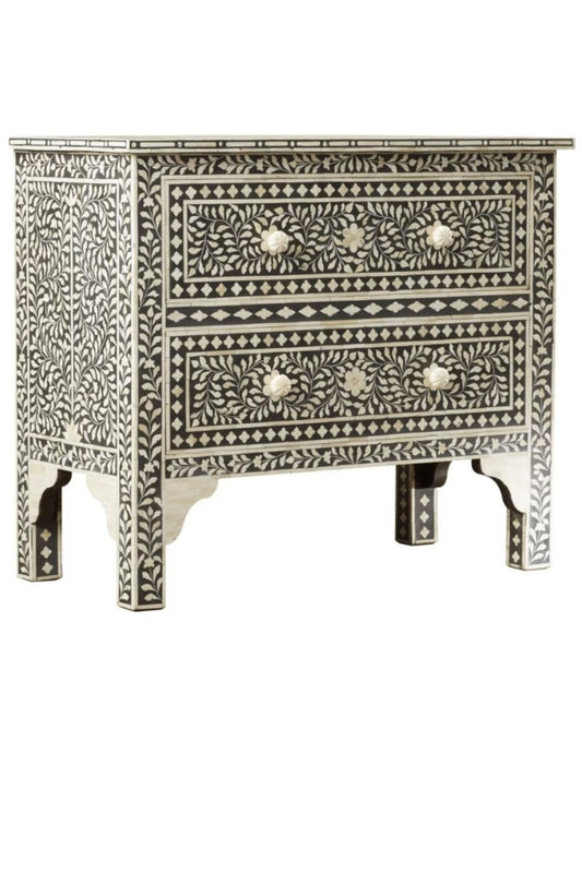 Handmade Bone Inlay Floral Pattern Two Drawer Dresser in Black Color