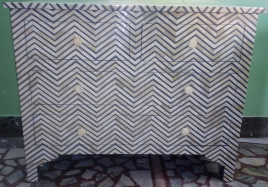 Handmade Bone inlay Grey Color Chevron Pattern Chest of Four Drawers