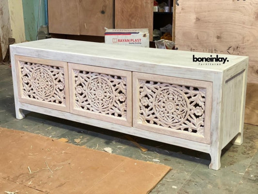 Hand Carved Albaron Solid Wooden Media TV Unit Console