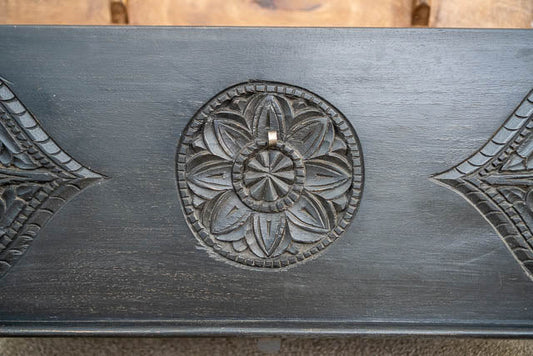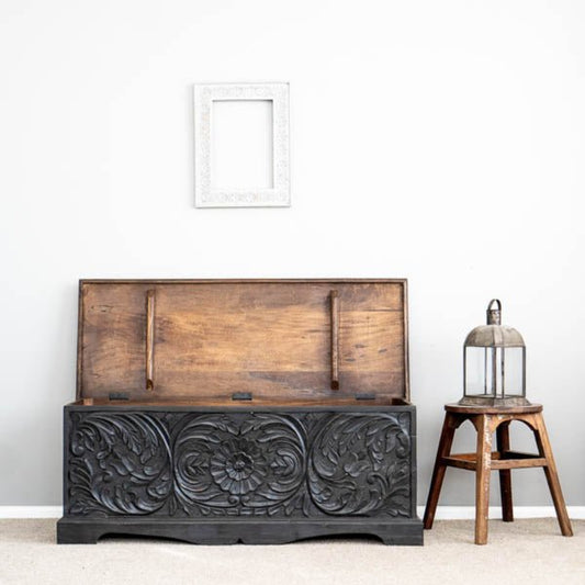 Wood Carving Storage Box | Hand-carved Black Wooden Blanket Box