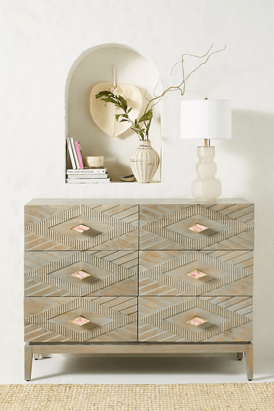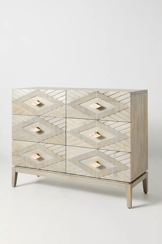 Carved Textured Trellis Six-Drawer Dresser | Wooden Dresser