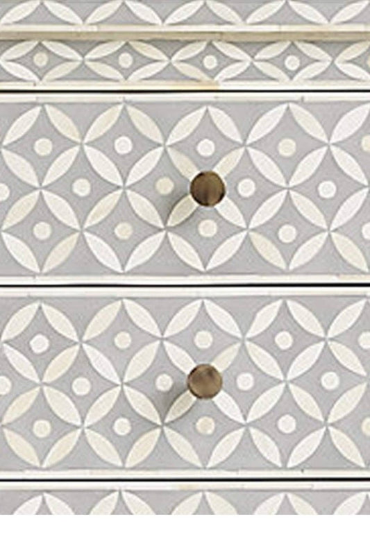 Handmade Bone inlay Geometric Pattern Nightstand in Gray Color | Custom Made Lampstand