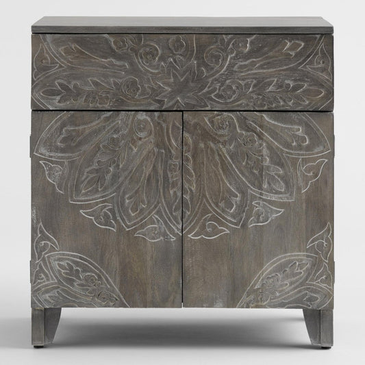 Handmade Floral Medallion Carved Tara Cabinet | Grey Color Wooden Small Sideboard