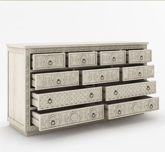 Hand Carved Large Chest of Eleven Drawers