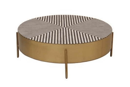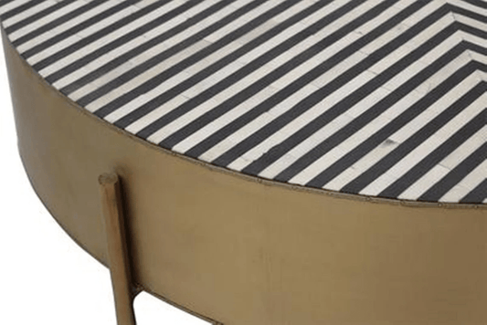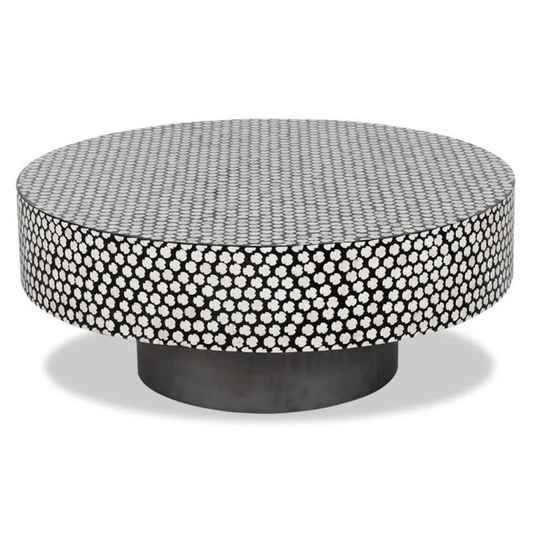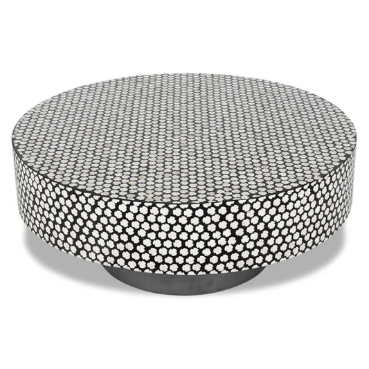 Luxurious Handmade Black & White Bone Inlay Round Metal Base Coffee Table