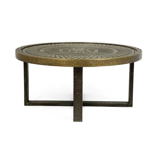 Handcrafted Bohemian Embossed Metal Golden Coffee Table