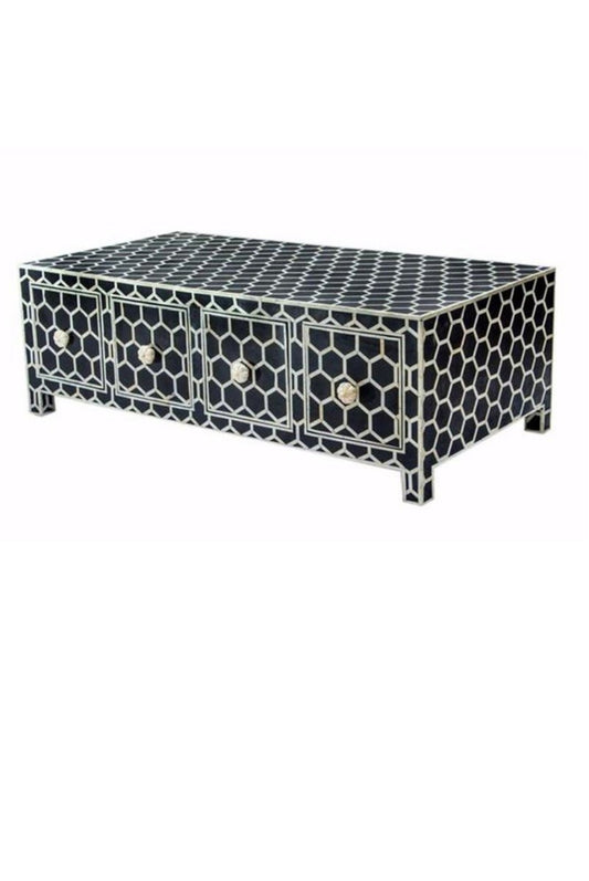 Handmade Bone inlay Honeycomb Pattern Four Drawer Storage Coffee Table