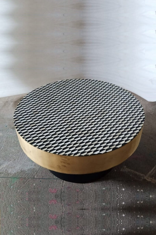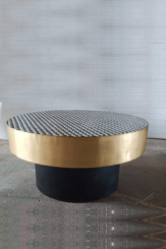 Chic-Boho Handmade Black Bone Inlay Round Coffee Table with Brass Base