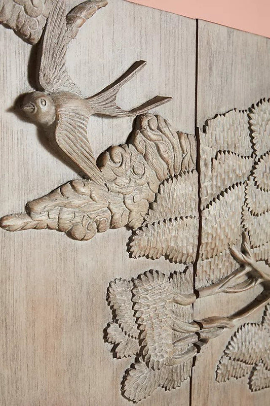 Hand Carved Land & Sky Bar Cabinet | Liquor Cabinet