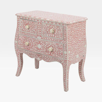 Handmade Bone Inlay French Style Nightstand in Floral Pattern with Three Drawer