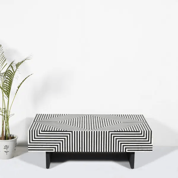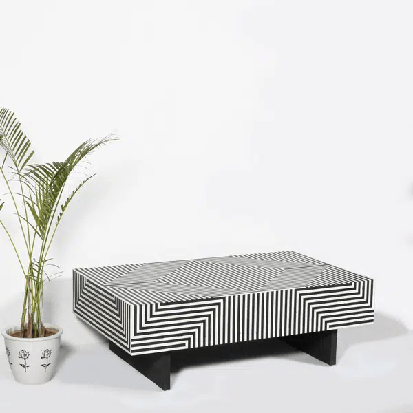 Handcrafted design Handmade Rectangle Striped Black Bone Inlay Coffee Table