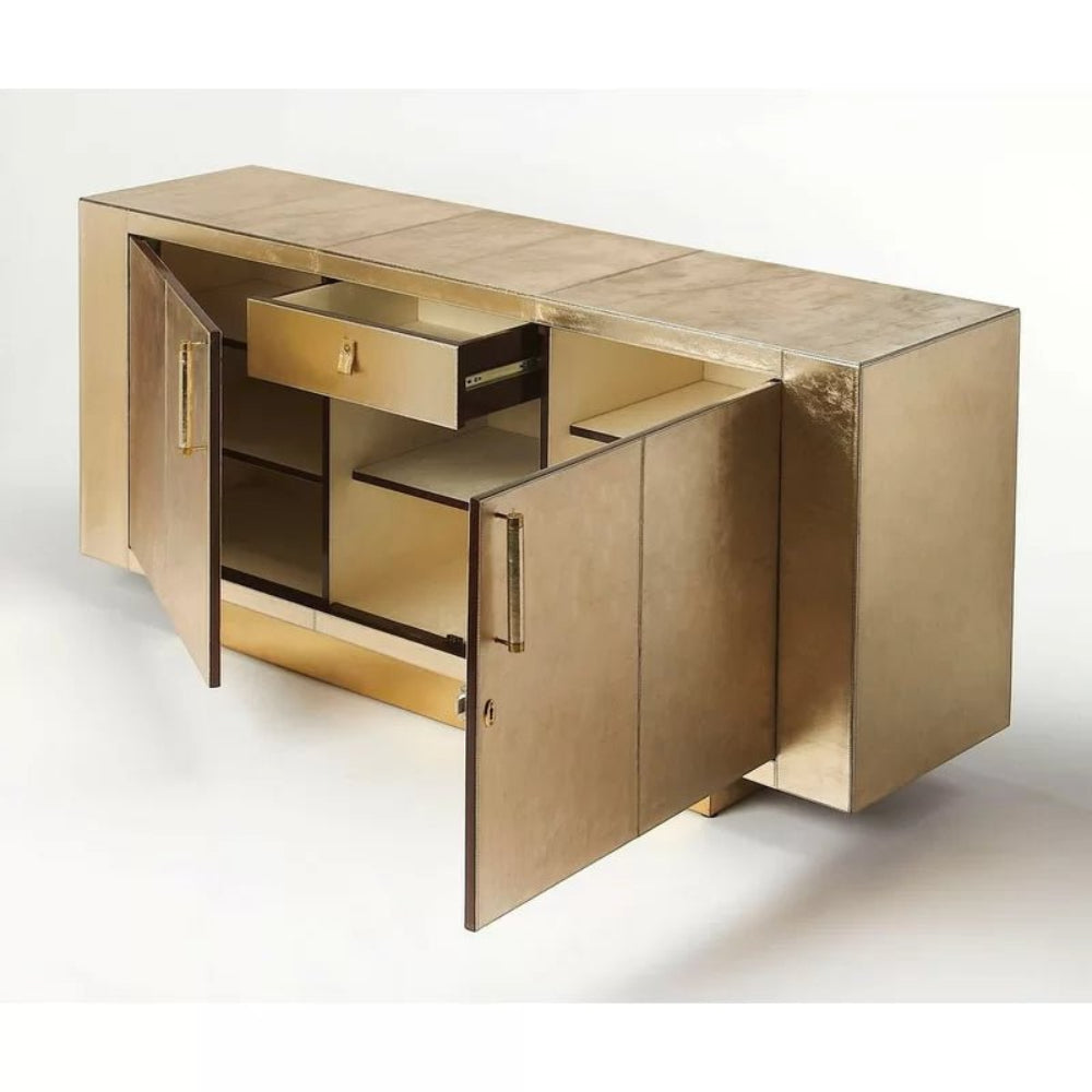 Add a splash of luxury and whimsy to your home with our Handmade One of a Kind Embossed Metal Two Door Sideboard. This stunning piece is perfect for any room—from the kitchen, dining to the bedroom—bringing both style and function to your space. The intricately embossed metal surface showcases expert craftsmanship, turning everyday storage into an artful statement. Behind its charming doors, you’ll find plenty of room to organize your essentials, keeping clutter out of sight but always within reach. Make your home a little more playful and a lot more elegant with this unique sideboard that’s as practical as it is beautiful.
