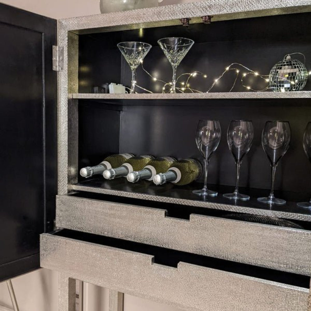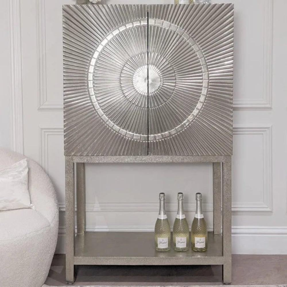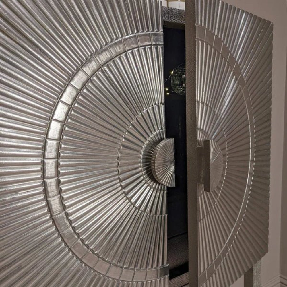 Silver Metal Embossed Bar Cabinet with Two Door