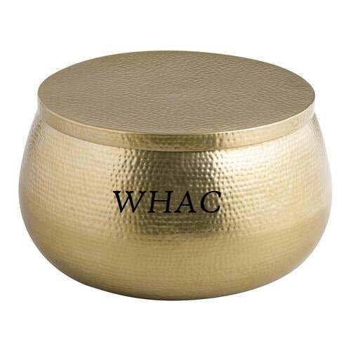 Handmade Gold Hammered Embossed Coffee Table | Brass Metal Round Center Table