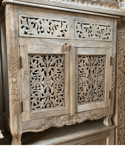 Introduce sophistication and elegance to your living space with our Hand Carved Solid Wooden Cabinet. Adorned with two doors and two drawers, this premium piece is perfect for any room, from your living room to your bedroom. Handcrafted in India, this statement piece is sure to impress.