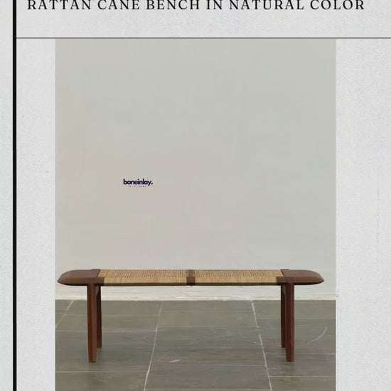 This Designer-Crafted Inoda+Sveje Inspired solid wood bench features natural-colored rattan cane woven with exceptional skill and creativity, showcasing unique patterns beyond traditional Indian designs. This piece functions beautifully as a solid wood museum bench and embodies a minimalist teak and cane bench aesthetic. Its subtly curved wood architectural bench design is perfect for farmhouse-style decor, serving as comfortable seating or a stylish side table, ideal for balconies, outdoor patios, and living spaces. Experience the blend of authentic Indian artisan craftsmanship and versatile functionality in your home.