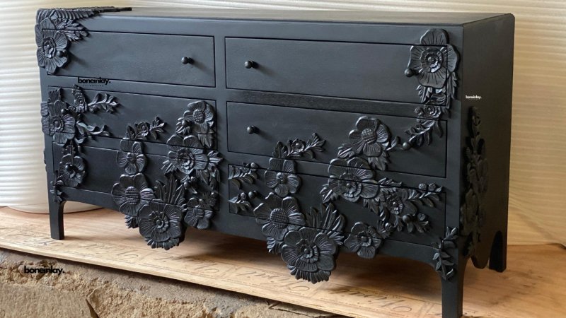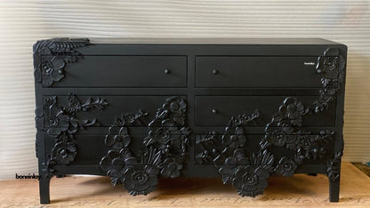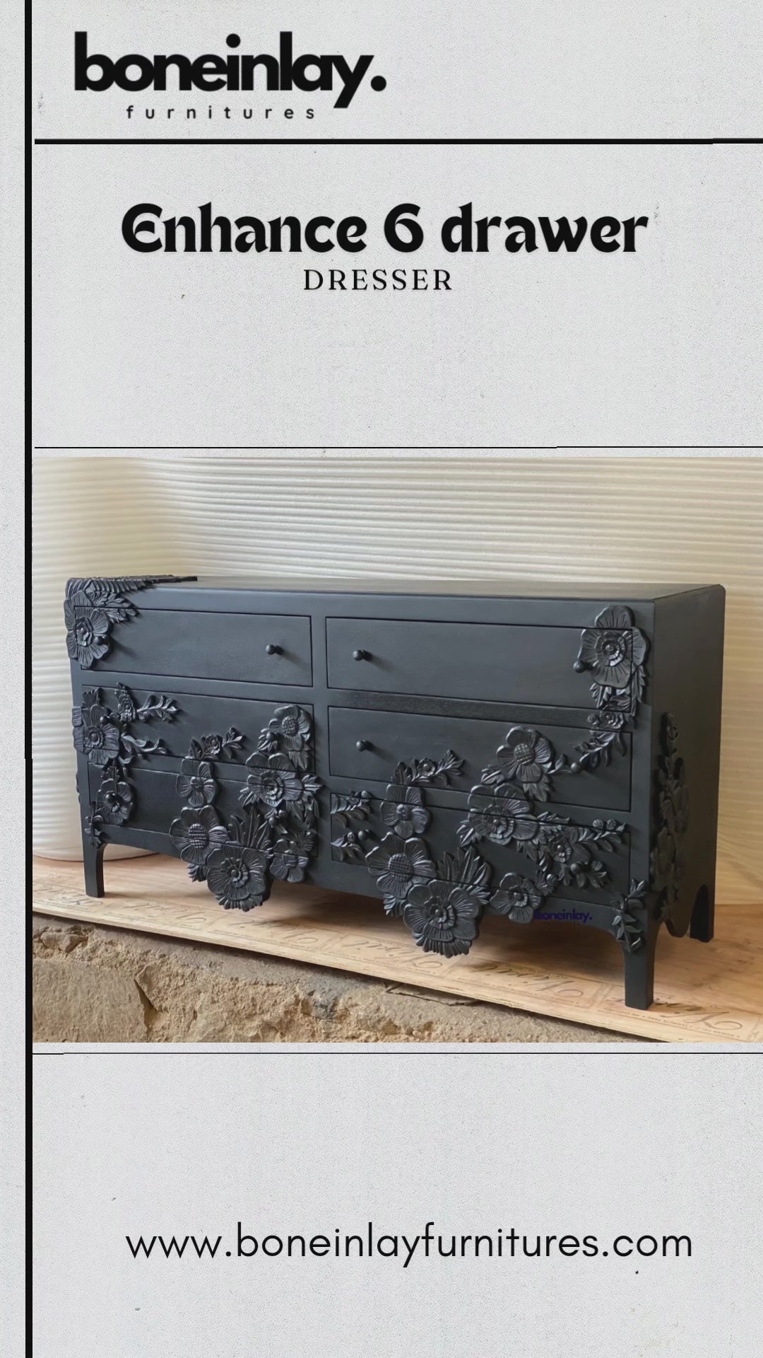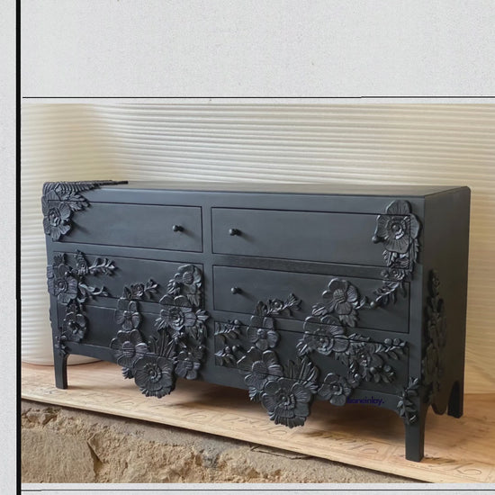 I love this dresser! The hand-carved details are breathtaking, and the black finish gives it a sleek, polished look. It’s incredibly spacious with six large drawers, making it both beautiful and practical. It’s a perfect mix of art and functionality