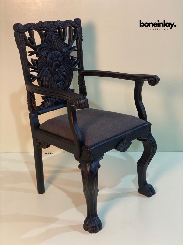 These chairs are absolutely regal. The black finish gives them such a sophisticated, dramatic look, and the lion carving is incredibly detailed—it really commands attention. They feel very solid and heavy, not like cheap furniture at all. They arrived packed in a wooden crate, totally safe. I feel like royalty sitting at my dining table now.