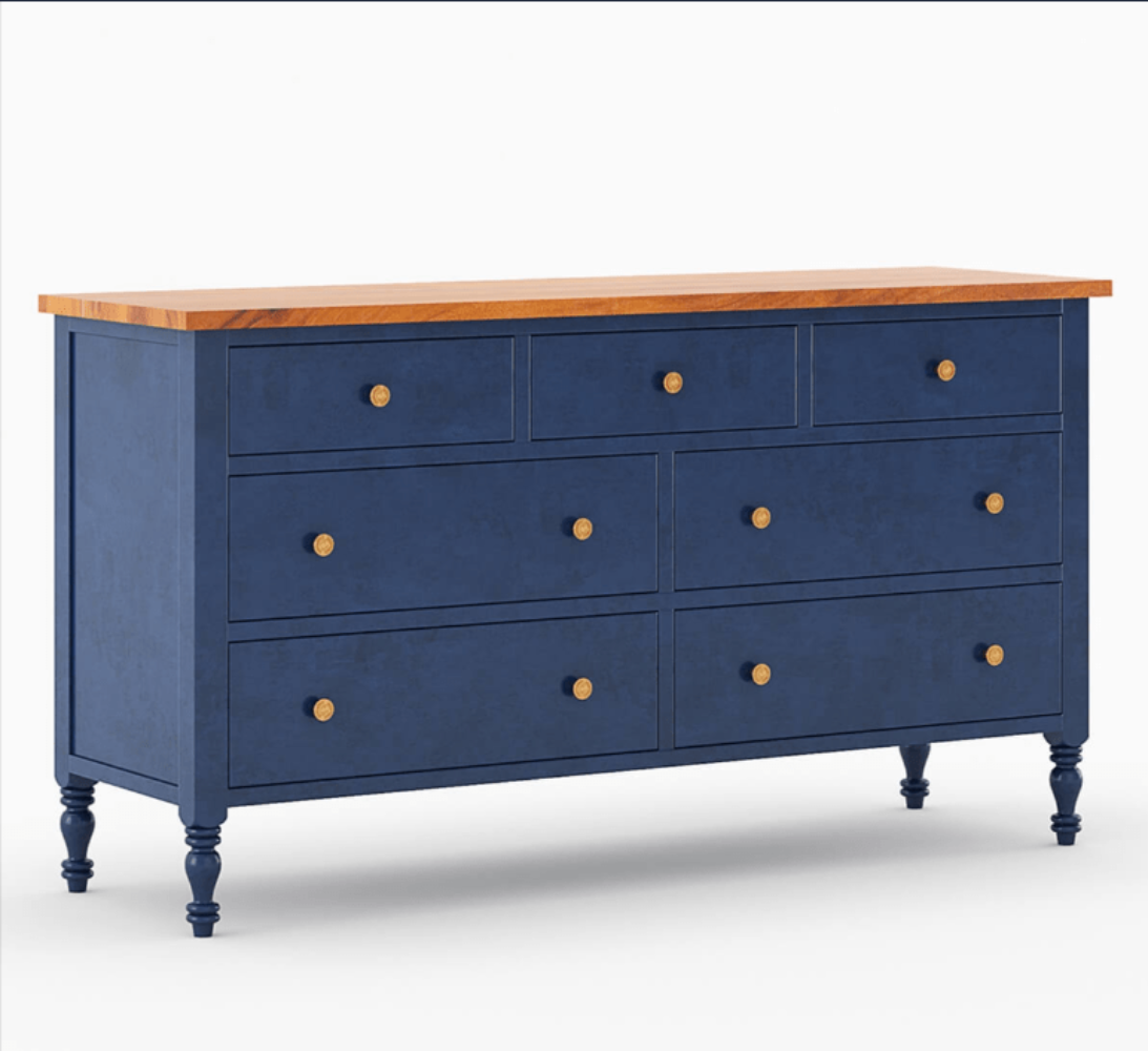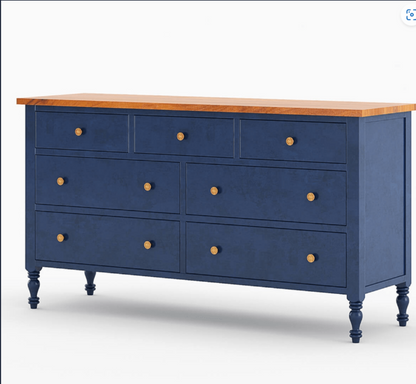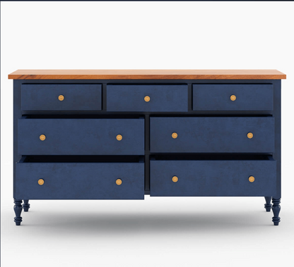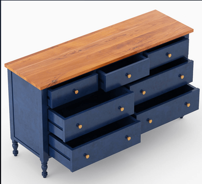Blue Wooden Hand Carved Chest of Seven Drawer Dresser
