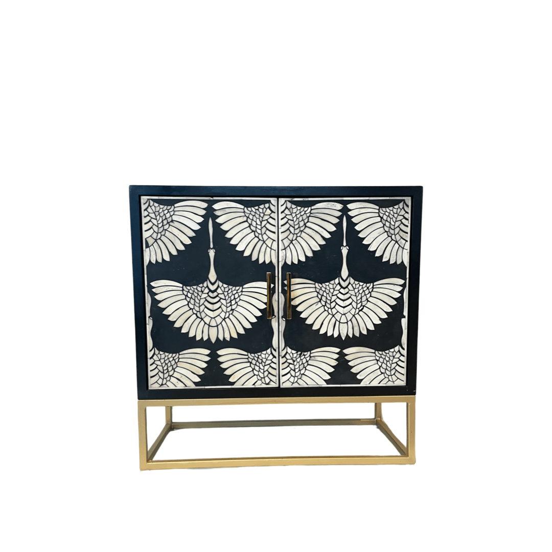 Handmade Bone Inlay Black Ibis Swan Cabinet | Cabinetry Furniture