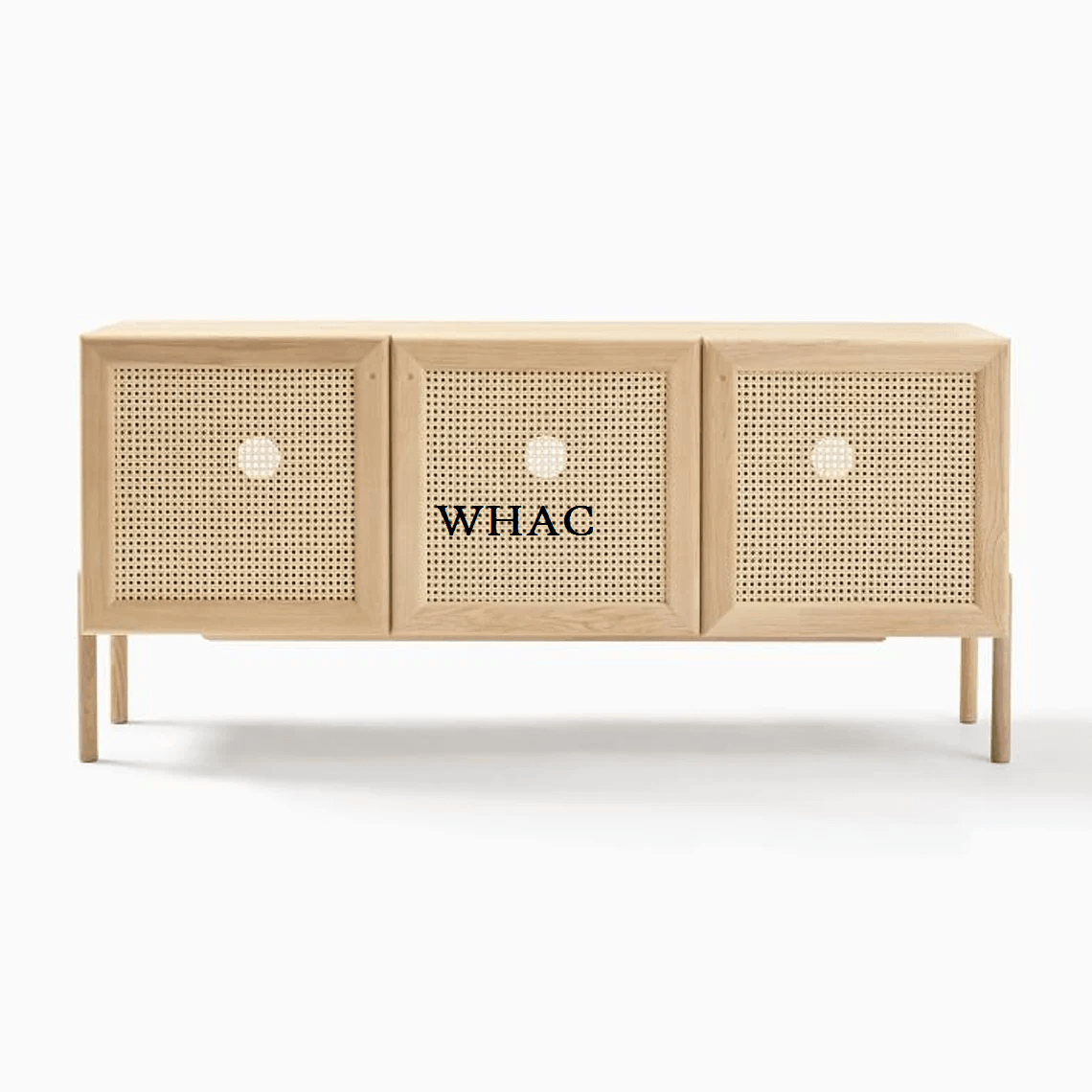 Handmade Tall Woven Cane Three Doors Sideboard – Credenza