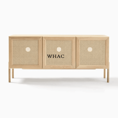The Handmade Tall Woven Cane Three Doors Sideboard – Credenza is a stunning addition to any home, combining solid wood strength with the natural beauty of woven cane doors. This high buffet sideboard is not just a storage solution but a statement piece that enhances your interior decor. Its spacious compartments allow you to neatly store extra dinnerware, flatware, and table linens, keeping your dining area organized and clutter-free. The tall design maximizes vertical space, making it perfect for rooms where floor space is limited. Invest in this elegant and functional sideboard to bring warmth, style, and practicality to your living space. Explore our wide selection of stylish buffet tables and sideboards to find the perfect fit for your home’s unique character.