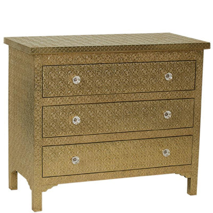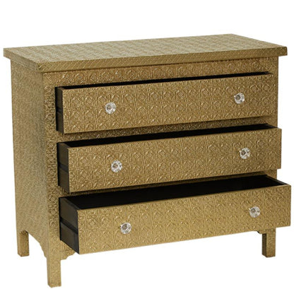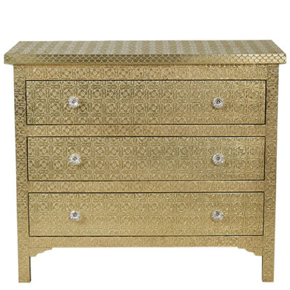 Handmade Embossed Metal Chest of Three drawers | Indian Metal Antique Dresser