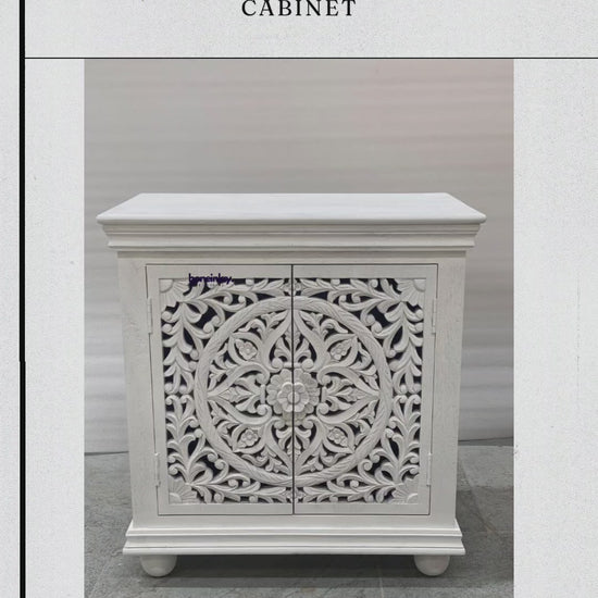 Hand Carved French Wooden Cabinet Rustic Small Sideboard with Two Door