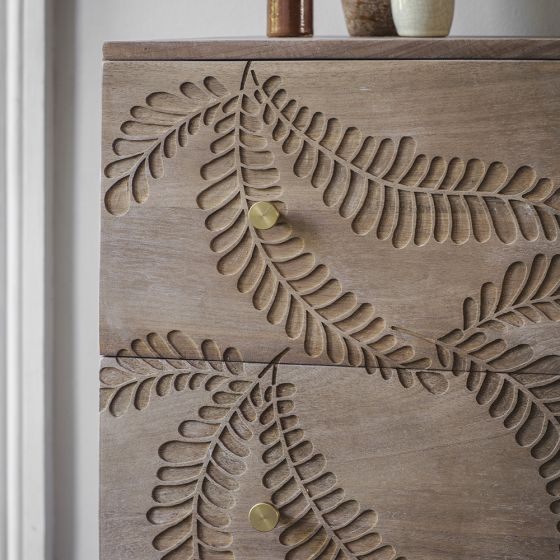 Leaf Design Hand Carved Fern Chest of Three Drawers Dresser Solid wooden furniture